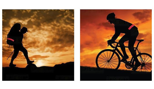 Moduł LED o szerokości 51 mm posiada odblaskowy wzór dla zwiększenia bezpieczeństwa użytkownika. Jego szerokość pozwala na wygodne podpięcie kieszeni na bidon, telefon i inne.